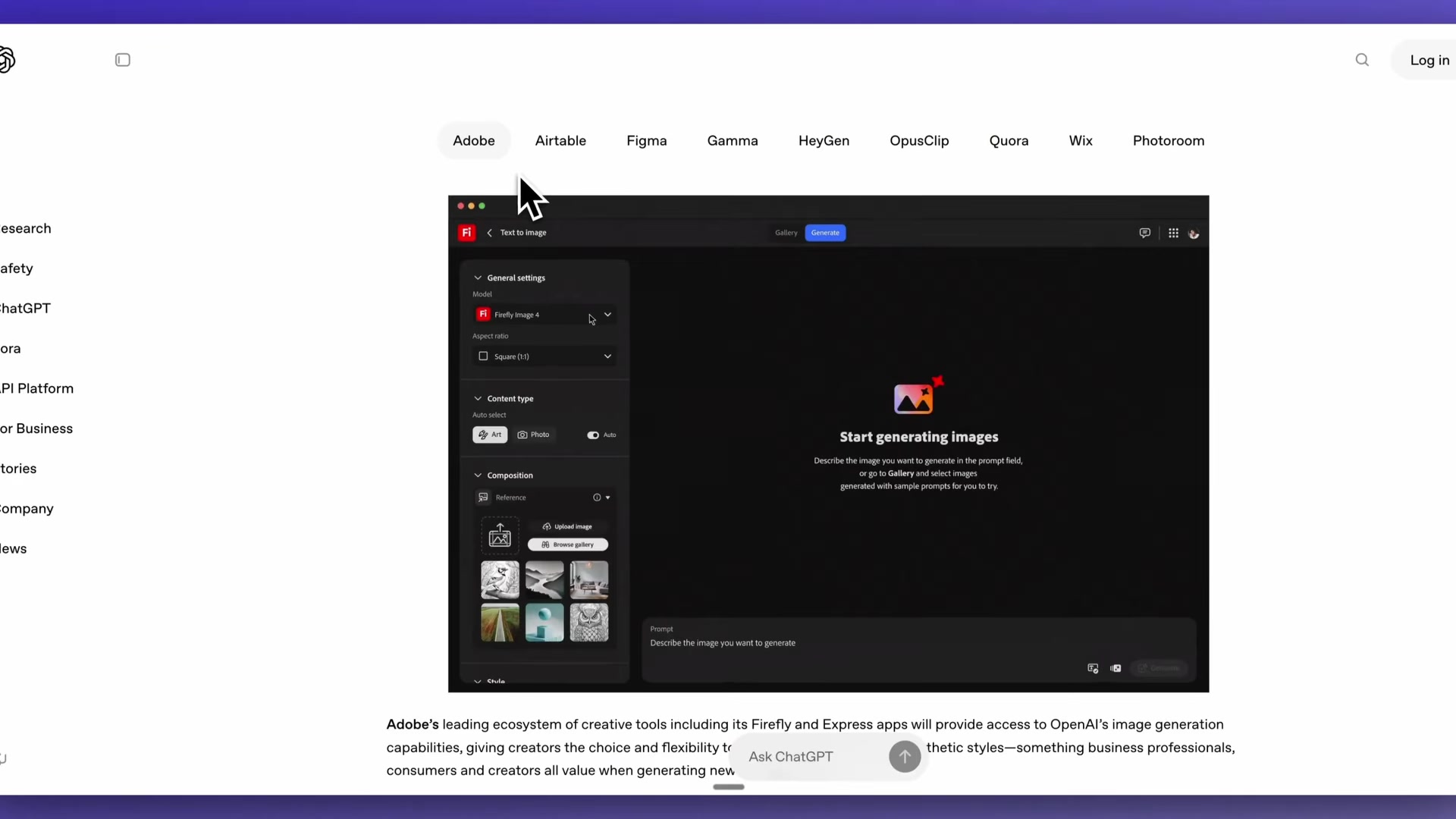 Despite its power, the model has some limitations. Generating images from complex prompts can sometimes take up to two minutes (latency). While text rendering within images has significantly improved compared to previous DALL-E models, the model can still struggle with precise text placement and achieving perfect clarity. Furthermore, maintaining strict visual consistency for recurring characters or specific brand elements across multiple generated images can occasionally be challenging. Despite these points, leading creative tools and platforms like Adobe, Airtable, Figma, and Gamma are already integrating these new image generation capabilities into their products.