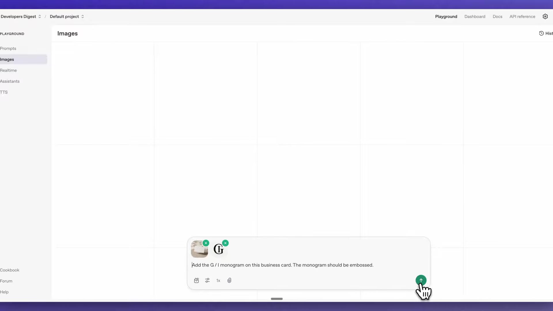 Once identity validation is complete, developers can experiment with the GPT-Image-1 model directly within the OpenAI Playground environment. This interface provides a hands-on way to test the model's capabilities without writing code initially. The Playground showcases a variety of pre-built examples, demonstrating potential use cases like creating business cards, designing logos, generating concert tickets, or visualizing interior designs.
